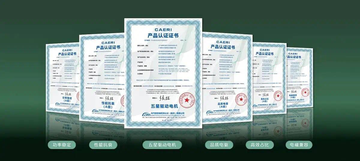 动力系统是这次的一个亮点。缤果Pro搭载了十二合一高集成电驱,官方称该电驱是全行业首款获得中国汽研(CAERI)五星驱动电机认证的产品。在高效占比、电磁兼容、性能抗衰、品质电驱、功率稳定五项测试中均达到A级。